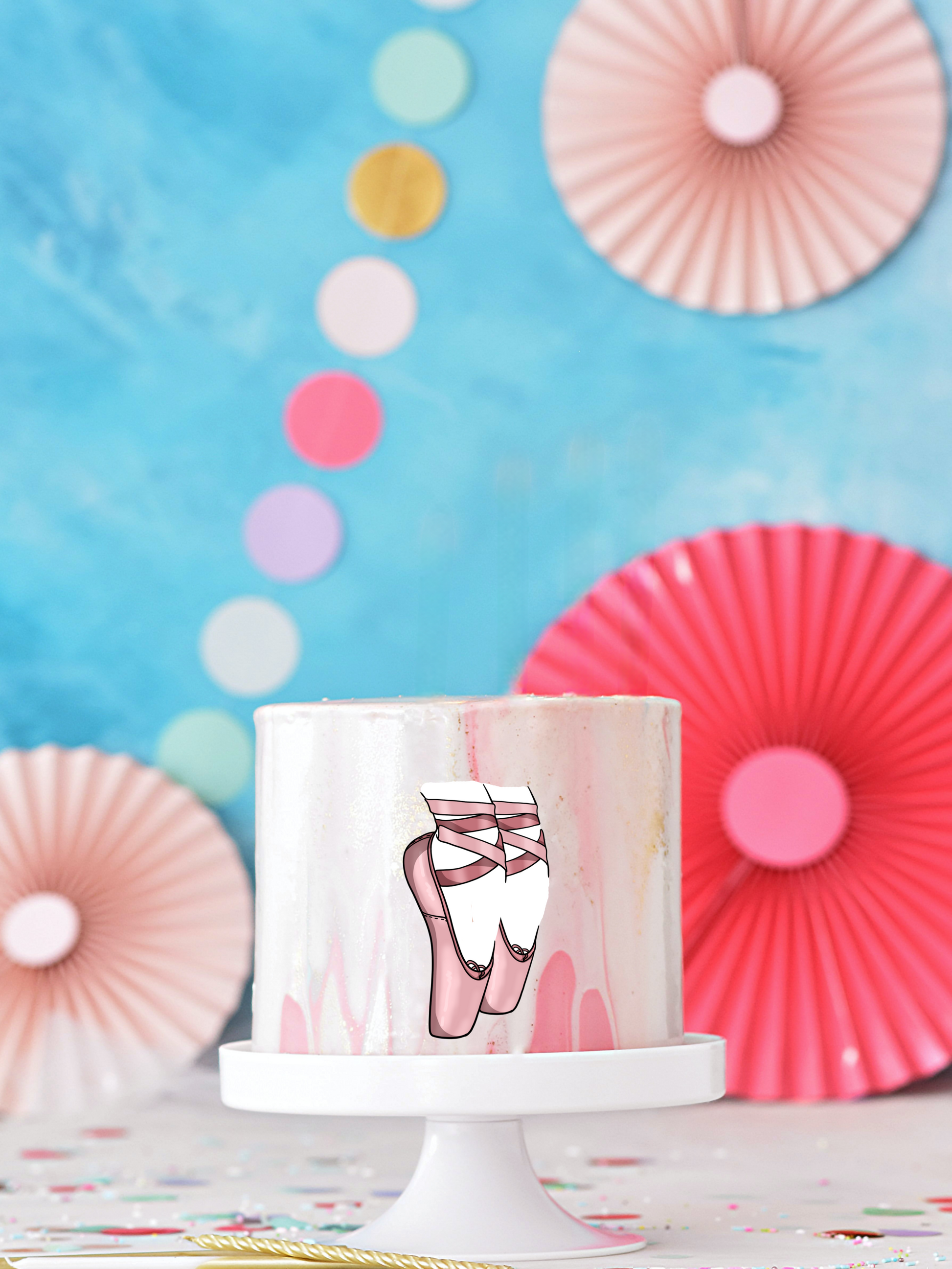 This cute ballerina shoes edible cutout image is just the perfect fit to your ballet themed birthday cake. Elevate your baking game with minimal effort. Simply place on your home baked or store bought cake, and you're done in just 2 minutes! Peel, stick, and impress!