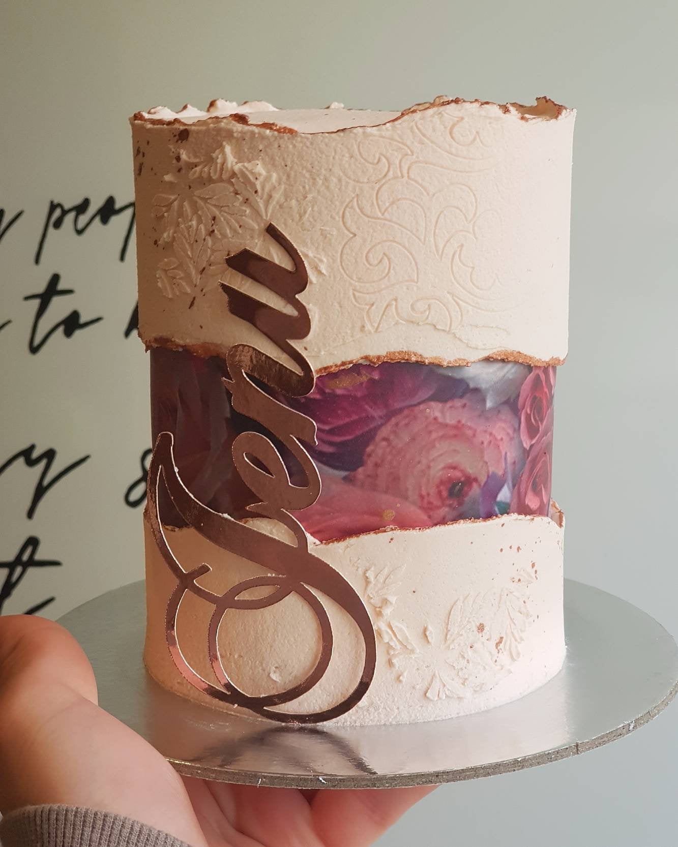 This edible image is just the perfect addition to any feminine/elegant cake! Have a look at how it turned out in the fault-line cake!